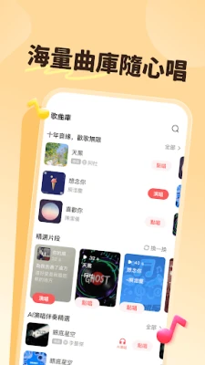 ⭐海量歌曲聽歌程式-收錄全網熱門HiFi無損伴奏,ktv伴唱流行新歌、經典老歌、KTV金曲一網打盡,想唱就唱!