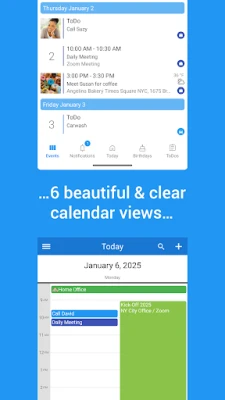 Visualize your schedule like never before with six powerful calendar views, from daily agendas, monthly and weekly schedules to yearly overviews and even a map view, and enjoy our unique feature set: