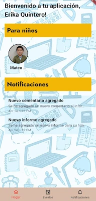 The app is made so that the parents can view the reports submitted by the tutors regarding their children during every session each week. Home page contains Children cards with their picture and name, and Notifications section for two most recent notifications. Events page shows the upcoming events. Notifications page shows Notifications which are deleted after 7 days of their creation; there are event notifications, new report and new comment notifications. On clicking the children card, a list of previous reports are displayed most recently from top to bottom. On clicking a report, the details of the report are displayed in order from top to bottom Tutor name and date with their picture, questions with respective answers submitted by the tutor, and the comments sections to converse with the tutor. This app helps in knowing the progress of the student’s growth each week with both parents and tutors contributing to their growth.