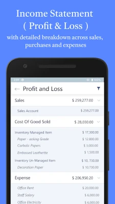 Simple Accounting Bookkeeping has been designed for small businesses to manage their complete accounting needs with limited or no knowledge of underlying accounting principles. You can send across invoices, record purchases, manage your expenses, track your payable and receivables. App is free to try for 30 days, after which you can purchase subscription for unlimited transactions