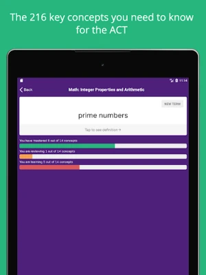 Research also shows that spaced repetition, or seeing the same concept repeated many times while you prep is the best way to practice recalling information quickly. This ACT practice app uses an algorithm based on the Spaced Repetition Technique. The Spaced Repetition Technique comes from academic research, which shows that memories are formed by repeated exposure to new information at different intervals. When you practice with this ACT prep App, you’ll notice that concepts are tagged as "mastered", "reviewing" or "learning". Concepts that you are "learning" will appear most frequently, until you master them, and then they will appear less frequently so that you can continue to review them.