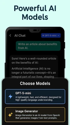 Unlock productivity with our AI assistant app and smart chatbot – powered by cutting-edge advanced AI technology. Whether you need quick answers or creative brainstorming, our intelligent AI assistant gets real work done using premium AI via official API.