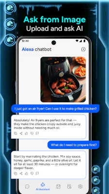 You can upload an image to the app and ask questions about it. The AI analyzes the photo and gives a clear, helpful answer. Perfect for learning, identifying items, or getting quick visual insights.
