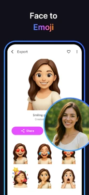 Turn text or images into unique AI emojis instantly. This app is your all-in-one solution to create your own emoji, make stickers, and share them in WhatsApp, chats, or social media.
