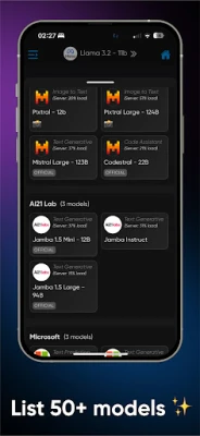 Just 1 app installed 📲, you can access multiple AI models from a variety of well-known providers and sources.