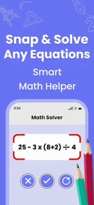 Solve math problems instantly with our math solution app! Whether you are stuck on a homework question or need quick maths solutions for any question, our maths solver has got you covered. Simply open the math solver camera to take a photo of the problem or choose one from your gallery, and watch as our photo math solver scanner app solve problems with step-by-step answers.