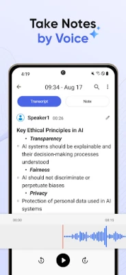 - Smart Organization: Benefit from an intuitive AI notebook and voice notepad to neatly organize your transcribe voice notes and other recordings. Keep your notes structured and accessible anytime.