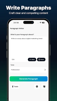 Unleash the full potential of your writing with Paragraph Writer, a powerful AI-powered writing tool designed to help you create plagiarism-free, high-quality paragraphs, essays, and stories. Whether you’re a student, writer, or professional, this app offers a complete writing solution with tools for generating, expanding, summarizing, and rewriting content.