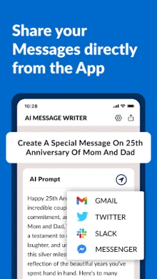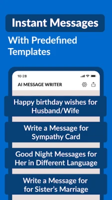 - Say goodbye to writer's block – our AI-powered app generates messages quickly.