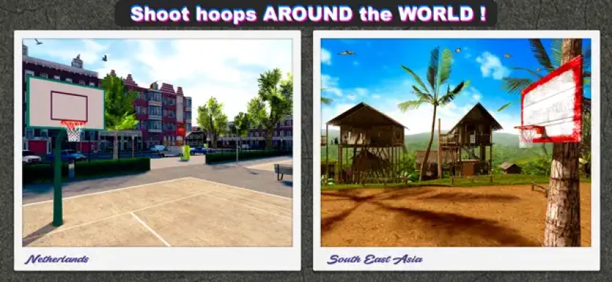 Shoot hoops in detailed 3D environments—from street courts to arenas worldwide.
