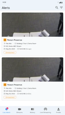 Bring your company’s entire security system with you on your iOS device along with the AI-powered intelligence you need to stay prepared. With the Ambient.ai mobile app, you can use a single app to access all your Ambient-enabled video streams – across all types of cameras – allowing you easy and efficient video surveillance and access control from anywhere.