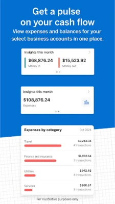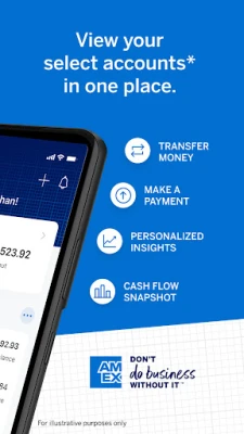 ** With the American Express Business Blueprint™ App, you can view your select business products . These products include American Express® Business Line of Credit, American Express® Business Checking, and American Express® Business Cards. Customers may also view the eligible external business checking and card accounts they choose to link to Business Blueprint. Additional terms and limitations may apply. Some app features may only be available on supported devices. Message and data rates may apply.