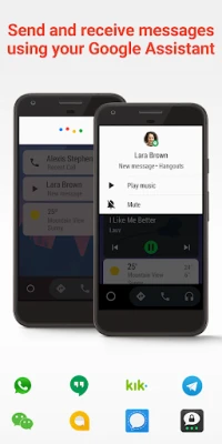 • Access your contacts folder and send and receive messages with the Google Assistant using SMS, Hangouts, WhatsApp, Skype, Telegram, WeChat, Kik, Google Allo, and many more messaging apps.