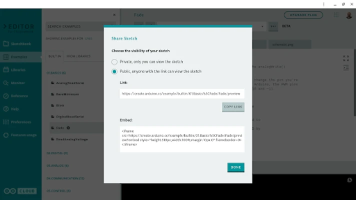Built for Chromebooks. Code online, save your sketches in the cloud, and upload them to the Arduino board connected to your device.