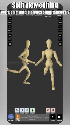 The app includes a split view editing feature, allowing you to view your models from two different camera angles simultaneously. This makes it easier to adjust poses and fine-tune details without constantly rotating the scene.
