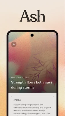 “The weekly insights is the best part of this app. Ash spotted patterns of my thoughts in ways I've never considered. And the next steps have given me ways to grow. This is extremely helpful.”