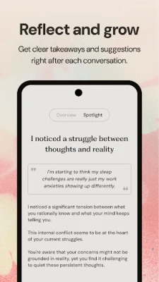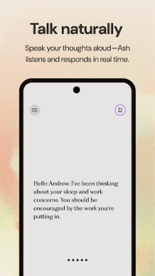 Ash gives you a secure space where you can share your unfiltered thoughts without fear of judgement. It remembers what you say, and learns from your interactions to find patterns and generate insights specific to you. It’s available 24/7 over voice & text, so you can use it for a quick check-in or longer deep dive.