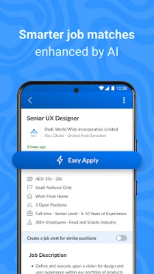 The app helps you discover Middle East jobs across cities such as Dubai, Abu Dhabi, Riyadh, Jeddah, Doha, Kuwait City, Manama, Muscat, Amman, and Cairo. With powerful filters and smart recommendations, you can: