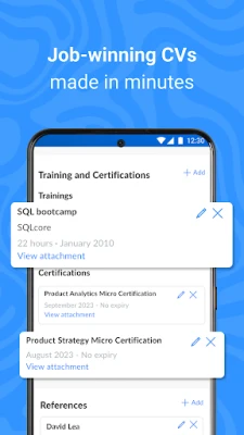 - Build a professional CV in minutes