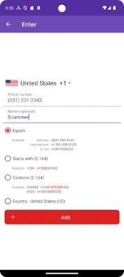 - Block phone numbers that starts with