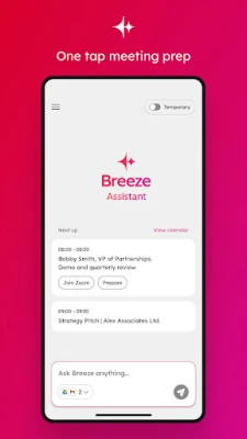 Breeze Assistant is your intelligent companion, bringing the power of HubSpot’s CRM and AI together to help you prepare for meetings, find answers faster, and work more effectively on the go.