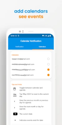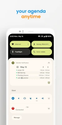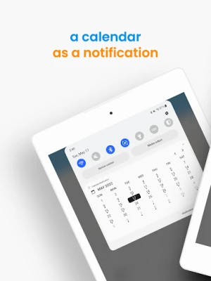 View your calendar and agenda as a notification. See you agenda and a full month of events and dates all from your notification shade. Just drag down your notifications at any time and have simple, easy and quick access to your calendar anytime.