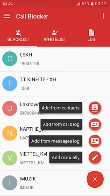 ⇛ You can easily block any numbers from contact list, calls logs, message list or add unwanted number manually