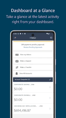 Once you’re enrolled, sign in with the instructions provided by your company’s Intellix Administrator or Treasury Management Client Service team. After you’ve authenticated, you’re free to start managing your accounts on the go.