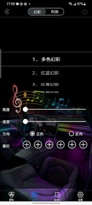 A car interior ambient light control APP, control the ambient light through the APP
