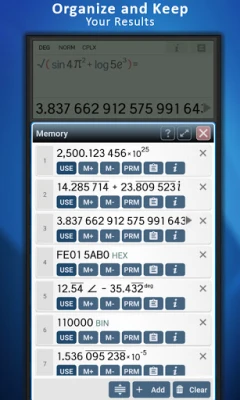 • Comprehensive functions: Math, Trig, Logarithmic, Statistics, and more