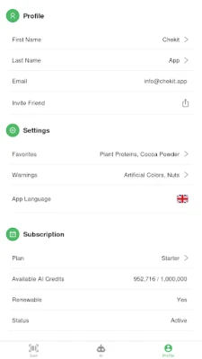 ✅ Customize to Your Needs Create personalized lists of ingredients you prefer or want to avoid. Chekit will flag them for you automatically.