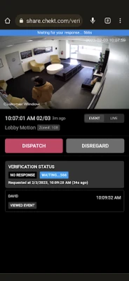 Security monitoring and the accurate response to an alarm is critical to ensuring the effectiveness of your security system. The CHeKT Visual Security system includes a video verification process for a 24-hour video command center to engage you in the decision-making process. Using SMS services or this Verifier app your alarm monitoring center can provide you with instant visual awareness of your property, allowing you to immediately request an emergency dispatch or to disregard the alarm.