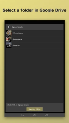 This app can be used in many situations: digital sign board; digital restaurant menu board; digital advertising poster board; digital information display; online photo frame/picture frame; infinite loop of photo slideshow. Google Drive signage tool can help your work.