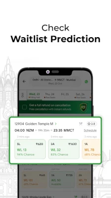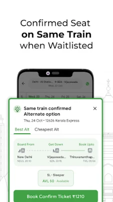 ● Get confirmed train tickets with waitlist prediction and the 'Same Train Alternates' feature.