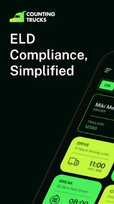 Counting Trucks is an ELD app for truck drivers that makes logging hours easy. It syncs with your truck to track drive time and miles automatically. No more paper logs.