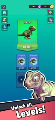 - Dinosaurs aren't extinct! They are waiting for you on a hidden island, come join the adventure.- Explore the map, grow your dinosaur by hunting your prey so you can beat other dinosaurs.- Try to be the last one standing in this battle royale action and collect your awards!- Finish in Top #3 to complete a league to get your medal and bonus earnings.- Get more cards and merge them to start with a leveled up dinosaur, so you can grow faster, become bigger and unbeatable.