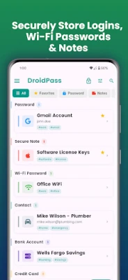 DroidPass stores information for websites ranging from banking to finances to simple gaming apps. This password manager has a powerful password generator that helps create secure passwords and keeps your information safe. All data is encrypted and synced across your Android and iOS devices.