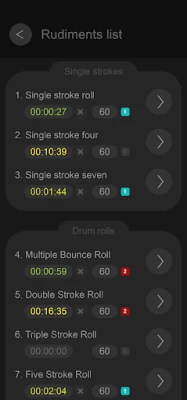 As a beginner drummer myself and having some programming skills I've decided to create mobile application, where I can get easy access to paradiddles and other rudiments in a library with clearly visual representation, on/off metronome and training time statistics for each rudiment in a set.