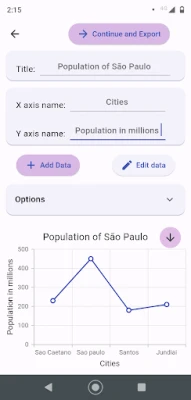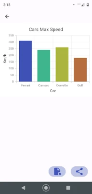 The app offers you several customization options for your chart, such as: chart size, item colors, caption names, hide captions, hide values, measurement unit and much more. The application has the following graphics: Line Chart Area Graph Bar Chart Pie Chart Donut chart Radial Chart Pyramid Chart