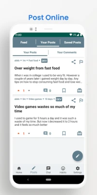 Easy Habits helps you track your bad habits, Good habits and mood. It also you let you post stuff to get help. Easy Habits also let you chat with other randomly in order to discuss your habits.