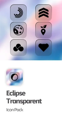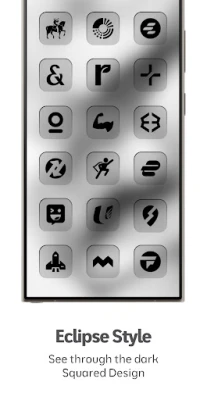 🌑♾️Eclipse Transparent Icon Pack showcases a minimalist design with dark transparent squared shape, amorphous icons rendered in black color!