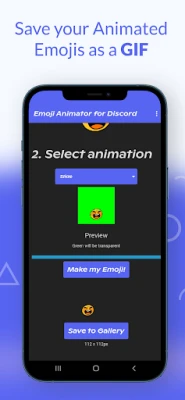The app will make an animated emoji and generate a moving GIF image that you can save to your gallery and use on discord or any other platform like Twitch. The app works completely offline too!