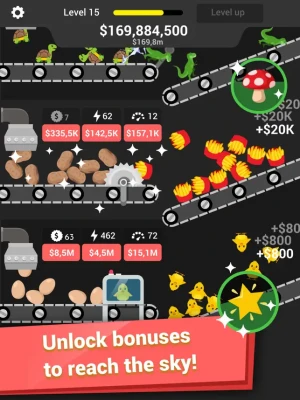 Hey Chief ! Ever dreamed of being the first person to transform a LITTLE TURTLE into a BIG DINOSAUR and become the NEXT BILLIONAIRE ?! Unlock super FUN EMOJIS, cool money boosters and you will be the next boss of the tycoon business !