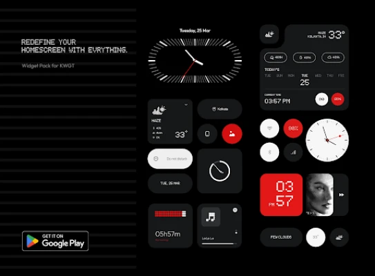 This widget pack is inspired by the design aesthetics of Nothing. It is an independent creation and is not affiliated with, endorsed by, or connected to Nothing Technology Limited in any way.