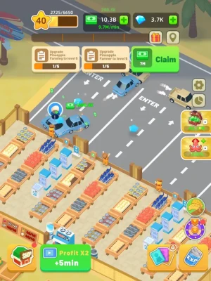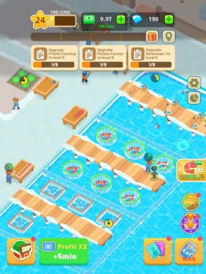 Click, tap, and upgrade your buildings to earn cash. Hire workers to help manage your business. Tend your farmer's team and sell your goods to the farmer's market for profit!