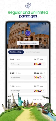 Access a wide list of countries and regions where we offer eSIM. You can browse through all available packages, from fixed data plans to unlimited options tailored to different destinations. Your next trip is just a tap away!