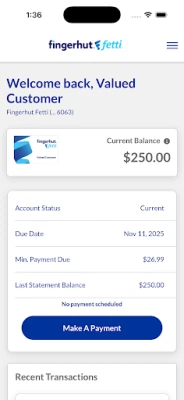 • View your available credit and current balance • Make payments on Fingerhut Fetti and Advantage accounts • Set up and view recurring payment schedules • Review past payments