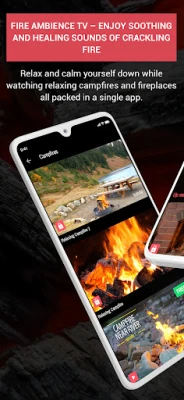 Fire Ambience TV app offers a variety of soothing crackling fire melodies that are specially created for relaxation, destress, calm and restoration!