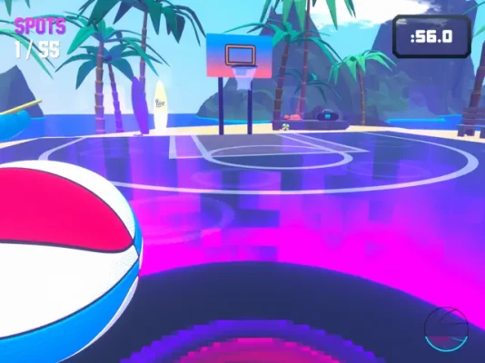 First Person Hooper is an arcade-style basketball game focused on the jump shot. Featuring first-person shooter controls with a lock-on system similar to modern FPS games, players can easily shoot the ball with power and timing mechanics relative to location on the court. Score with shot style bonuses and get rewarded with a power-up for swishes and bank shots. Get shots up in a relaxed island setting and customize the court to fit any mood. Rank up on the leaderboards in score and time-attack modes or master your shot in free play.