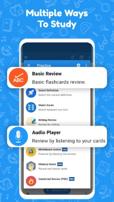 ✔ MANY STUDY MODES: Use different review modes to keep you engaged while studying, which includes: writing review, multiple answers, audio player, and the good old flashcards review.